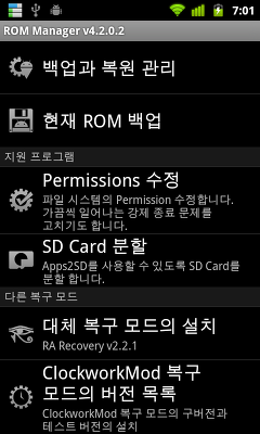 ROM Manager를 이용한 ClockworkMod 복구모드 설치
