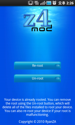 - 안드로이드 프로요 이하 버전에서 루팅을 간단하게 할 수 있도록 지원하는 앱이다.